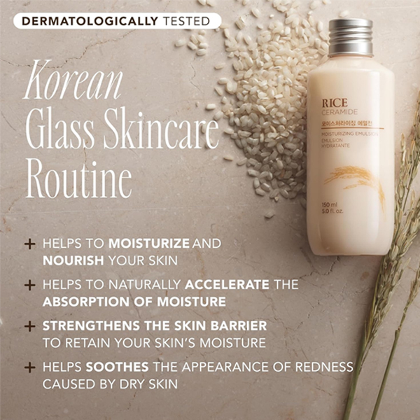 The Face Shop Rice & Ceramide Moisturizing Emulsion is ideal for dry skin as it moisturizes rough patches with the help of ceramide, which also maintains the skin barrier. Rice extract improves skin texture by reducing the appearance of dark spots, freckles, and hyperpigmentation.
