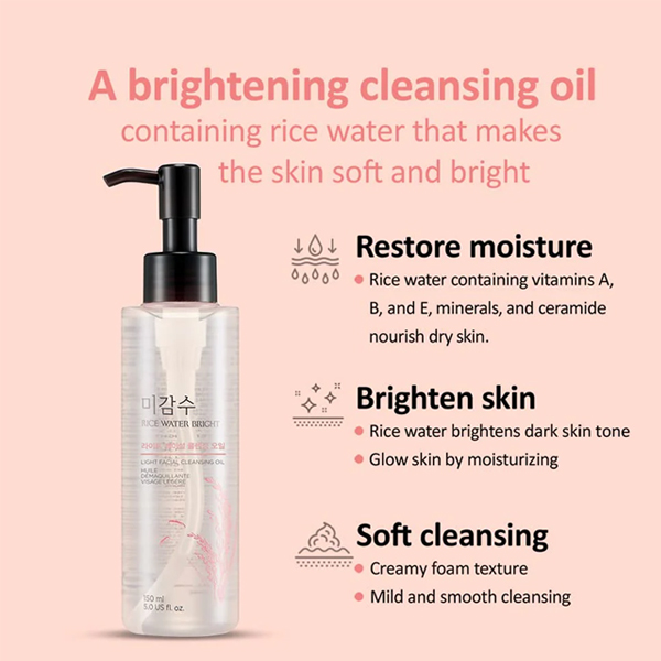 Get pure, fresh skin with our Rice Water Bright Light Cleansing Oil. Enriched with jojoba oil, it dissolves impurities found on your skin’s surface while hydrating the epidermis.