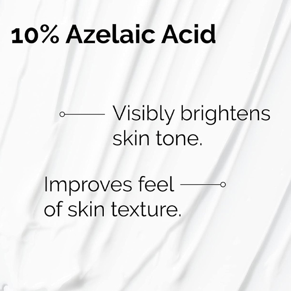 Found in grains, Azelaic Acid is produced naturally by yeast that lives on normal skin. It brightens the skin tone while visibly improving the evenness of skin texture and reducing the look of blemishes. It is a multi-functional support ingredient for all skin types and also acts as an effective antioxidant. This formula offers a very high 10% concentration of high-purity Azelaic Acid in a lightweight cream-gel system.