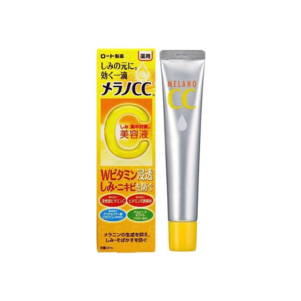 About This Item: Rohto Melano CC Intensive Anti-Spot Essence is a Japanese serum formulated with vitamin C and vitamin E as well as anti-inflammatory and anti-bacterial ingredients to prevent and treat dark spots, hyper-pigmentation, blemishes and acne.Ideal for individuals with problem skin, Rohto Melano CC also helps to reduce redness and irritation whilst killing the bacteria that causes the formation of acne.The most popular product in the Melano skincare line, the Melano CC essence easily absorbs into the skin, without leaving residue.Our customers love the gentle, healing effects the Melano CC serum has on their skin. Simple to apply, the Melano CC Essence features a thin spout to avoid leaking, helping you to control of the exact amount of serum you want to dispense when applying.