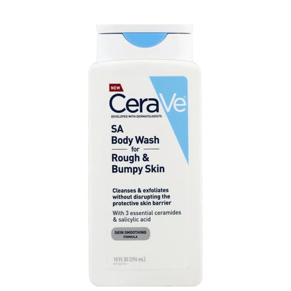 CeraVe SA Body Wash for Rough & Bumpy Skin provides gentle, non-irritating cleansing plus exfoliation to improve skin texture without harsh microbeads that can scratch the skin. In addition, our salicylic acid body wash features niacinamide to soothe the skin, hyaluronic acid to retain the skin’s natural moisture and three essential ceramide to maintain the skin’s protective barrier.