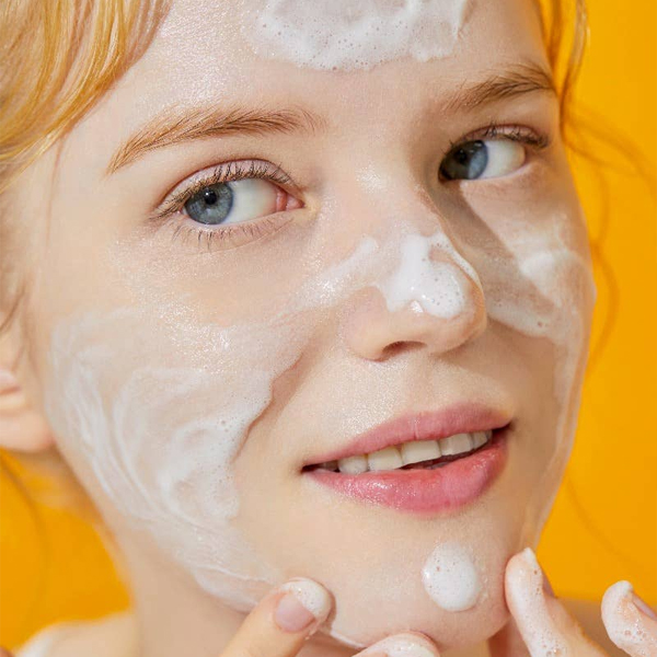 1. Wet your face and lather a pea sized amount of cleanser between your palms.