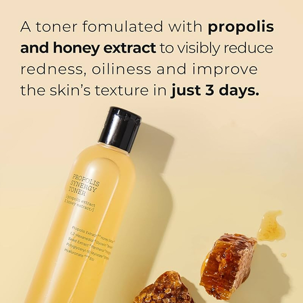 Powered by 72% black propolis extract, this toner offers anti-inflammatory and anti-bacterial effects while boasting healing properties. Its quick-absorbent texture leaves a supple, refreshing and dewy finish.
