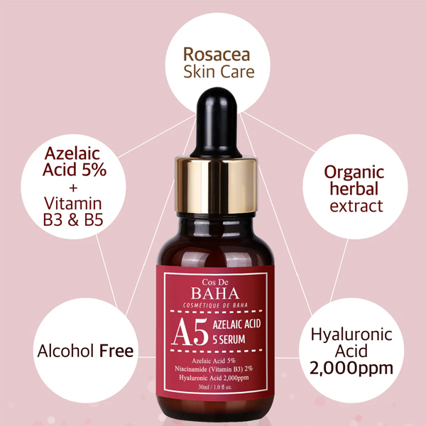 Acne appears at different ages and people often complain that they cannot find a definitive solution. If you have cystic acne, redness, irritation, you should definitely give the serum a chance: Cos De BAHA AZ Azelaic Acid 5 Serum! This serum, unlike Cos De BAHA AZ Azelaic Acid 10 Serum, contains 5% azaleic acid, making it suitable for azaleic acid beginners as well as for people with very sensitive skin. As we already know, azelaic acid is an ingredient that is used to treat acne, and the hyperpigmentation left behind. But, it has also been scientifically proven that this ingredient fights every type of acne-causing bacteria. This product helps regenerate damaged skin, fades post-acne scars and brown spots (hyperpigmentation), treats rosacea and provides skin radiance. On the other hand, its formulation with Barbadensis leaf extract made it possible to soothe any irritation that may be caused by external factors, such as: free radicals, dust, etc. Also, this serum has in its formulation 2 very powerful moisturizing agents, such as: hyaluronic acid and panthenol, which offer 100% deep hydration. While the formulation with 2% niacinamide helps to control excess sebum and shrink pores. Suitable for all skin types, especially acne and sensitive skin!