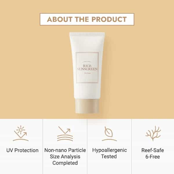 I’M FROM Rice Sunscreen is a mineral sunscreen that contains 41% Goami Rice Extracts from Yeoju, South Korea which can help remove skin impurities for a softer and smoother skin texture and brighter complexion.Rice Sunscreen has completed the SPF testing on human skin with the result of SPF 50+ PA++++. Contains Non-nano Zinc Oxide that can block both UVA and UVB and is less likely to penetrate human skin, and does not contain Oxybenzone and Octinoxate which is harmful to the coral and marine ecosystem. A sunscreen that not only protects skin from UV rays but at the same time also has excellent effects in soothing and calming the skin irritated by UV radiation.As a 100% mineral base sunscreen, it has a moist and silky texture that lightly coats and quickly blends into the skin without leaving any stickiness. This product also has a pleasant scent, recommended for those who prefer fragrant skincare products.