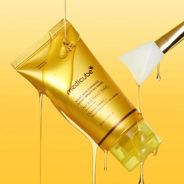 glow skin. This gentle wrapping mask works overnight to nourish and achieves a radiant glow by morning. Easy to remove and gentle on your skin, it ensures a refreshed, luminous finish. Infused with turmeric and kojic acid to help refine uneven skin texture and improve hyperpigmentation. Plus, Hydrolyzed Collagen for elasticity and a youthful glow, which make lines and wrinkles less noticeable by moisturizing the skin.