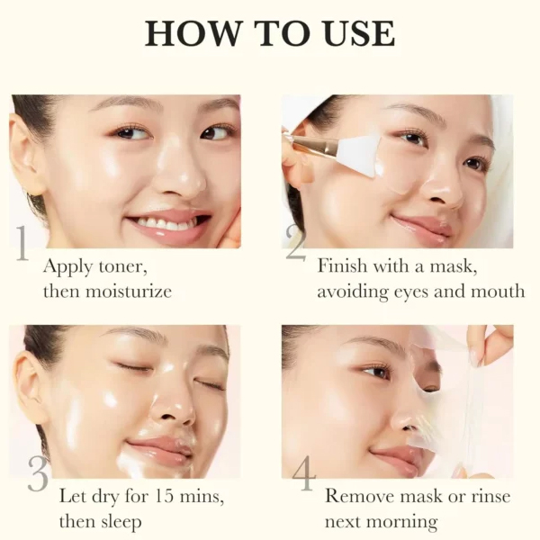 3. remove the mask and gently rinse with lukewarm water the next morning.