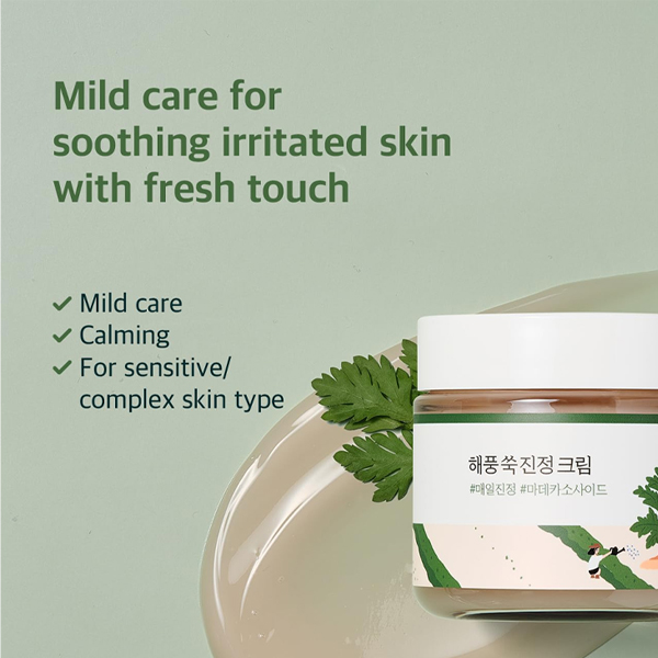 Cream Round Lab Mugwort Calming Cream slightly cools, soothes, softens and moisturizes sensitive and problem skin, suppresses inflammation and reduces moisture loss.