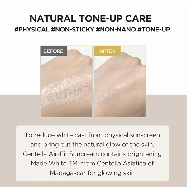 A non-nano physical sunscreen that blocks UV rays, while simultaneously brightening the skin.This sunscreen can be worn all year long without feeling heavy or leaving a white cast.Non-nano physical sunscreen with strong UV filters, deflecting UV rays like a mirror, suitable for all seasons and outdoors.Natural tone-up effect with a matte finish.Smooth and soft application with minimized white casts and stiffness.Blocks UV rays and brightens the skin simultaneously with niacinamide and MadeWhiteTM.Certified as a dual-functional cosmetic for brightening / UV protection by the Ministry of Food and Drug Safety.
