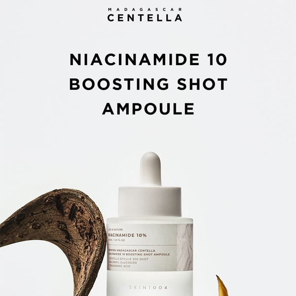 he SKIN1004 Madagascar Centella Niacinamide 10 Boosting Shot Ampoule is a brightening treatment designed to restore radiance, even out skin tone, and refine texture. Powered by 10% niacinamide, tranexamic acid, and ascorbyl glucoside, this concentrated formula targets dullness, enlarged pores, and pigmentation for visibly clearer, more luminous skin.