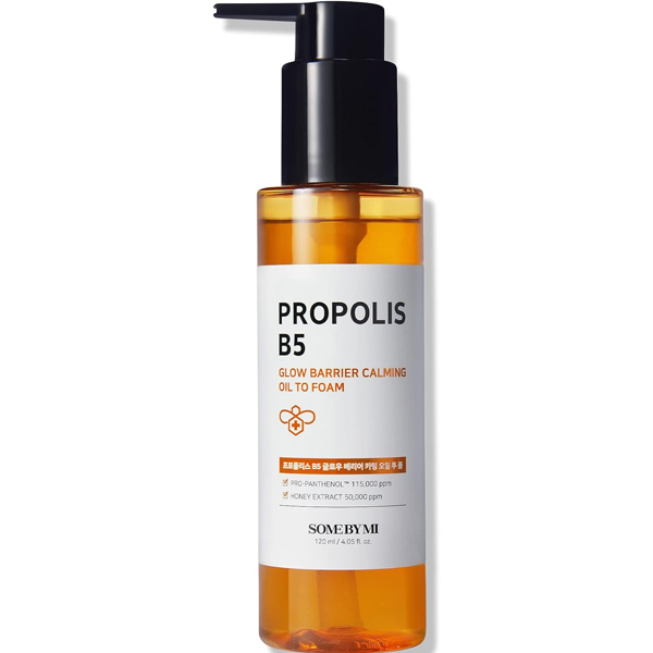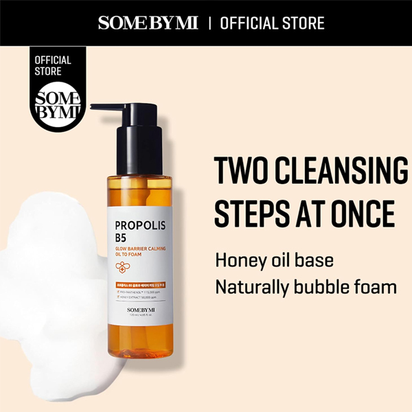 Formulated with 115,000 ppm of Pro-Panthenol, Honey Extract, and Royal Jelly Extract, SOME BY MI Propolis B5 Glow Barrier Oil to Foam Cleanser deeply cleanses the skin to provide a refreshing and vibrant glow. Combining double cleansing in one step, it is perfect for someone who’s looking for something that is quick and simple, especially those with sensitive skin.Dermatologically tested. Suitable for all skin types including sensitive skin and troubled skin.A honey oil-based cleanser removes all traces of makeup and pore waste in one go.Packed with naturally derived ingredients such as Oatmeal, Coconut and Apple for a thorough, deep cleansing experience.Also enriched with SOME BY MI’s signature ingredient Truecica™ promoting skin-soothing benefit.It leaves your skin protected and nourished thanks to the infusion of Propolis and B5.