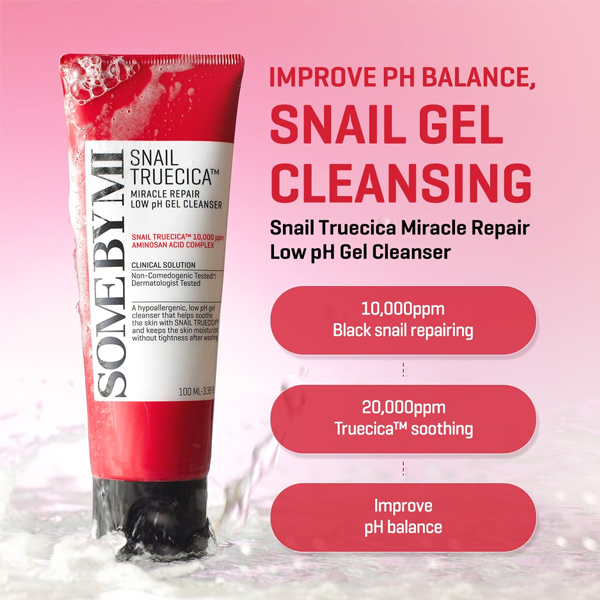 Ingredients: Water, Lauryl Hydroxysultaine, Disodium Cocoamphodiacetate, Sodium Chloride, Potassium Cocoyl Glycinate, Acrylates Copolymer, Sodium Methyl Cocoyl Taurate, Potassium Cocoate, Butylene Glycol, Snail Secretion Filtrate, Benzyl Glycol, Citric Acid, Citrus Aurantium Bergamia (Bergamot) Fruit Oil, Ethylhexylglycerin, Hexylene Glycol, Disodium EDTA, Salvia Officinalis (Sage) Oil, Betula Platyphylla Japonica Juice, Camellia Sinensis Leaf Extract, Glycyrrhiza Glabra (Licorice) Root Extract, Agrimonia Eupatoria Extract, Panthenol, 1,2-Hexanediol, Centella Asiatica Extract, Perilla Frutescens Leaf Extract, Melaleuca Alternifolia (Tea Tree) Leaf Extract, Phenoxyethanol, Glycine, Dipropylene Glycol, Saponaria Officinalis Extract, Serine, Glutamic Acid, Kigelia Africana Fruit Extract, Aspartic Acid, Caprylic/Capric Triglyceride, Leucine, Alanine, Lysine, Arginine, Asiaticoside, Tyrosine, Phenylalanine, Asiatic Acid, Madecassic Acid, Threonine, Proline, Valine, Isoleucine, Pentylene Glycol, Phosphatidylcholine, Glycyrrhiza Glabra (Licorice) Root Extract, Platycodon Grandiflorum Root Extract, Poria Cocos Extract, Coix Lacryma-Jobi Ma-Yuen Seed Extract, Paeonia Albiflora Root Extract, Histidine, Madecassoside, Cysteine, Methionine, Polygonatum Odoratum Extract, Scutellaria Baicalensis Root Extract, Astragalus Membranaceus Root Extract, Angelica Gigas Extract, Cornus Officinalis Fruit Extract, Artemisia Vulgaris Extract, Rehmannia Glutinosa Root Extract, Ceramide NP, Bifida Ferment Lysate, Lactobacillus Ferment Lysate, Lactococcus Ferment Lysate