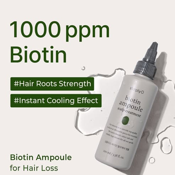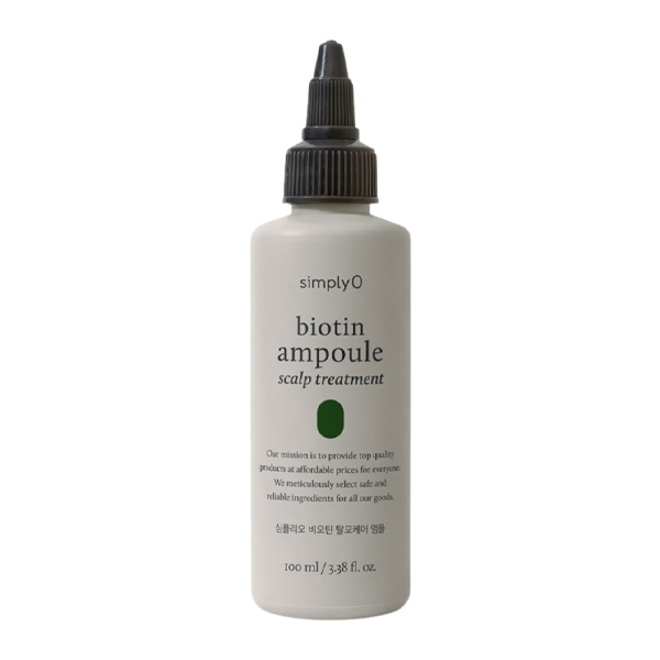simplyO Biotin Ampoule for Hair Loss is a nutrient-rich solution designed for individuals experiencing hair loss and those who do not have hair loss problems yet. Infused with ingredients that protect the hair as well as 1000 ppm of biotin, an important vitamin for your hair, it nourishes your scalp. Enriched with eight plant ingredients that help soothing and moisturizing your hair as well as caring for dead skin cells and cleanliness of your scalp, promoting strong and healthy hair. The narrow-tip container facilitates direct contact with the scalp, maximizing the ampoule’s efficacy and pleasantly cooling your scalp.