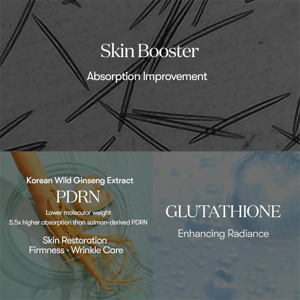Featuring plant-based, low-molecular PDRN and CICA REEDLE, this ampoule promotes skin regeneration and skin firmness. The formula is enriched with eight types of hyaluronic acid, along with peptide complex and glutathione to boost skin hydration and radiance. Clinically tested formula is suitable for all skin types including sensitive skin.
