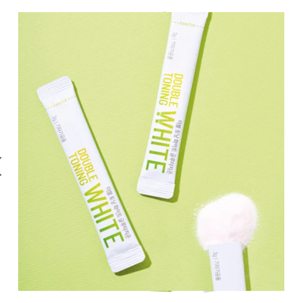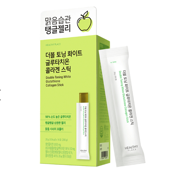 The Healthy Place Double Toning White Glutathione Collagen Stick is an “inner beauty” supplement sold in Korea, most prominently at the retailer Olive Young. It is a powdered supplement in a stick pack intended to be taken once daily to help brighten the skin, improve elasticity, and promote overall skin health. A single 14-stick pack provides a 2-week supply.