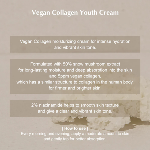 5 ppm of ‘vegan collagen (water-soluble collagen)’, which has a similar structure to the collagen in the human body, provides a firmer skin and a radiant complexion.