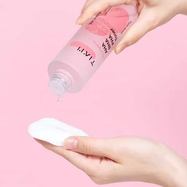 2. Dispense a moderate amount on a cotton pad, and wipe along the skin texture.