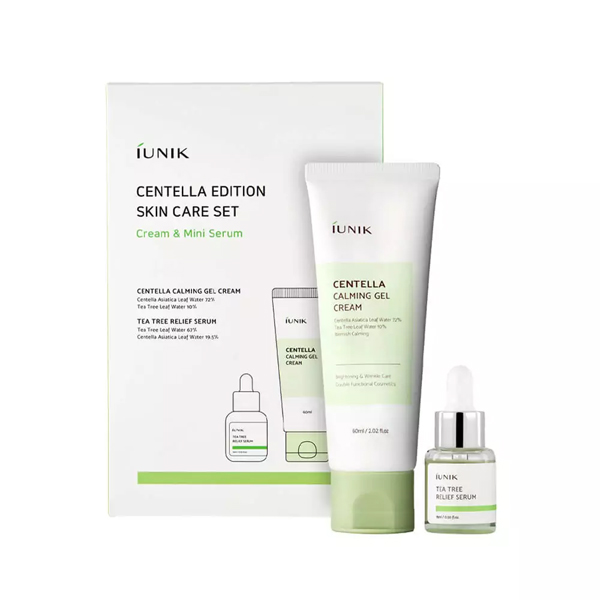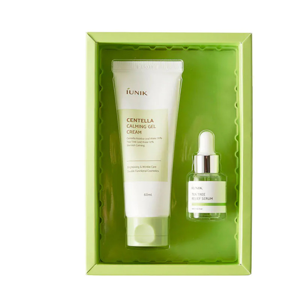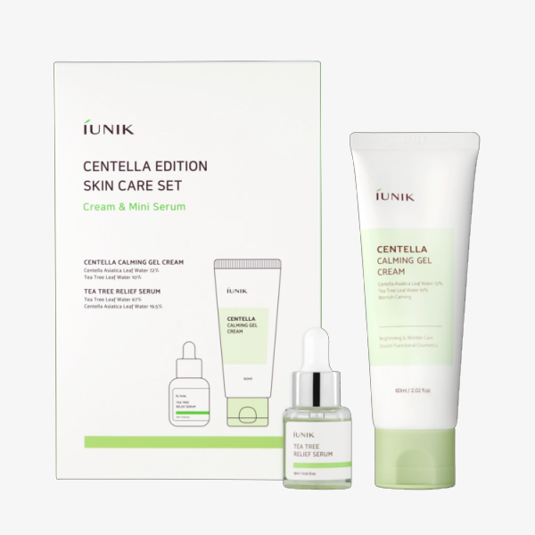 A powerful combination for irritated, stressed or blemish-prone skin, iUNIK’s Centella Edition Skincare set contains both its Tea Tree Relief Serum and Centella Calming Gel Cream.
