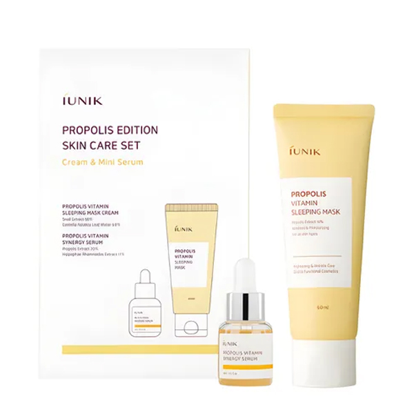 A skincare set with products mainly formulated by Propolis Extract, which helps brighten, moisturize your skin.
