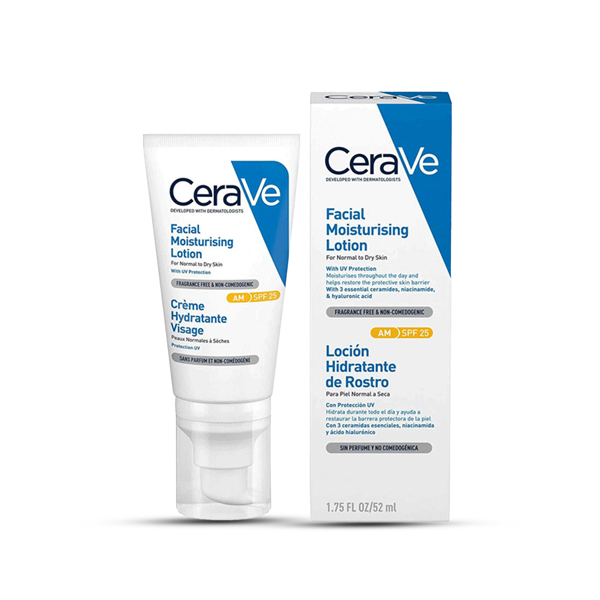 Developed with dermatologists, CeraVe AM Facial Moisturising Lotion with SPF 25 is a daily lightweight moisturising lotion for the face. Specially formulated to protect the skin barrier with 3 essential ceramides and MVE technology to provide instant and long lasting hydration. Hyaluronic Acid helps to retain the skin’s natural moisture.