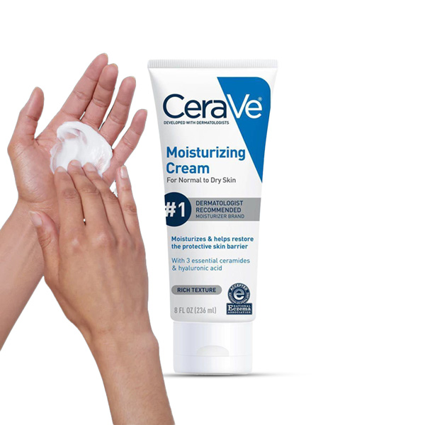 CeraVe Moisturizing Cream includes three essential ceramides and hyaluronic acid to effectively hydrate the skin and restore the skin’s protective barrier. Developed with dermatologists and suitable for dry and very dry skin on the face and body, this rich, non-greasy, fast-absorbing moisturizing cream features our patented MVE Delivery Technology to release a steady stream of moisturizing ingredients throughout the day and night. CeraVe Moisturizing Cream with ceramides is fragrance free.