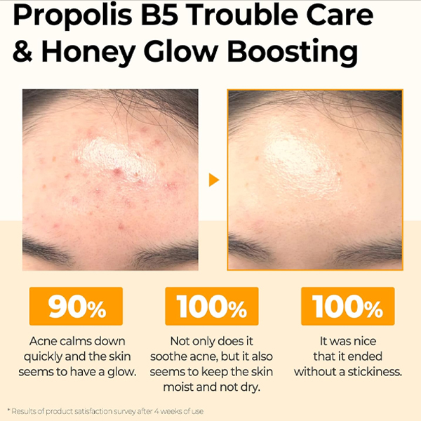 Ingredients: Propolis Extract(65%), Honey Extract, Dipropylene Glycol, Butylene Glycol, Hydroxyethyl Urea, Propanediol, Niacinamide, 1,2-Hexanediol, Centella Asiatica Extract, Melaleuca Alternifolia (Tea Tree) Leaf Water, Honey, Panthenol(5,000 ppm), Royal Jelly Extract, Artemisia Princeps Leaf Extract, Centella Asiatica Leaf Extract, Pollen Extract, Malt Extract, Glycerin, Sodium Hyaluronate, Allantoin, Adenosine, Madecassoside, Madecassic Acid, Asiaticoside, Asiatic Acid, Ceramide NP, Citric Acid, Sodium Citrate, C12-13 Pareth-9, Sodium Polyacrylate, Water, Benzyl Glycol, Ethylhexylglycerin, Raspberry Ketone, Disodium EDTA, Fragrance, Benzyl Alcohol, Coumarin.