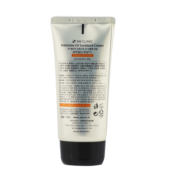 The 3W clinic intensive UV sunblock cream is a soft cream type sunscreen that can be spread softly on the face protecting the skin from the sun.