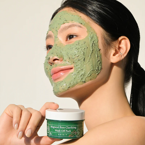 Axis-Y, this incredible calming and clarifying mask was developed for those who suffer from “maskne”, the breakouts and sensitivity caused by wearing a protective mask regularly.  With a base of 61% Mugwort extract, this wash off pack clears the pores of impurities, soothes inflamed and irritated skin, and gently exfoliates dead skin to reveal a bright and healthy complexion. Suitable for all skin types especially recommended for those who suffer from acne, enlarged pores and stressed skin.  Mugwort Pore Clarifying Wash Off Pack adalah masker wajah yang dapat digunakan 2 kali dalam satu minggu. Wash-off Pack ini cocok untuk semua jenis kulit.
