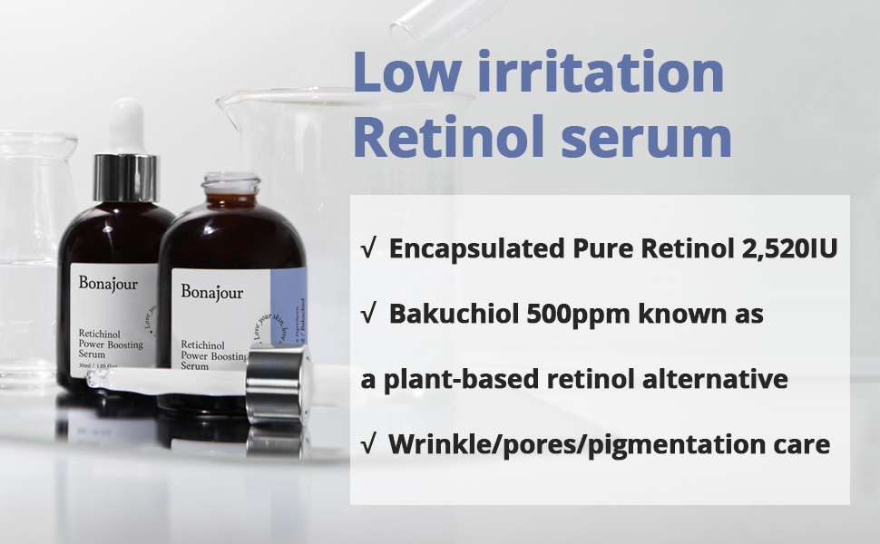 · Retinol activates the skin’s turnover cycle and increases collagen production; bakuchiol restores your skin condition and protects your skin; both help with reducing wrinkle depth and enhancing elasticity
