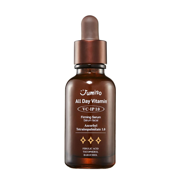 Jumiso All Day Vitamin VC-IP 1.0 Firming Serum with Vitamin C and Bakuchiol fills the skin with hydration, firmness and brightness. Ascorbyl Tetraisopalmitate works with a retinol derivative, Bakuchiol, to stimulate collagen production to minimise the appearance of fine lines while brightening skin complexion. Ferulic Acid and Tocopherol add to the serum’s brightening and antioxidant formula to fight free radicals and alleviate dullness. The serum is packed with antioxidant-rich Aronia Fruit extract to protect the skin barrier and leave the skin radiant. Cruelty-free and free of essential oil, alcohol, artificial fragrance, parabens and mineral oil. Leave the skin brighter and firmer with this all-skin type serum.