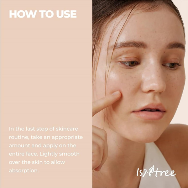 At the last step of skincare routine, apply a moderate amount to face and gently pat for better absorption.
