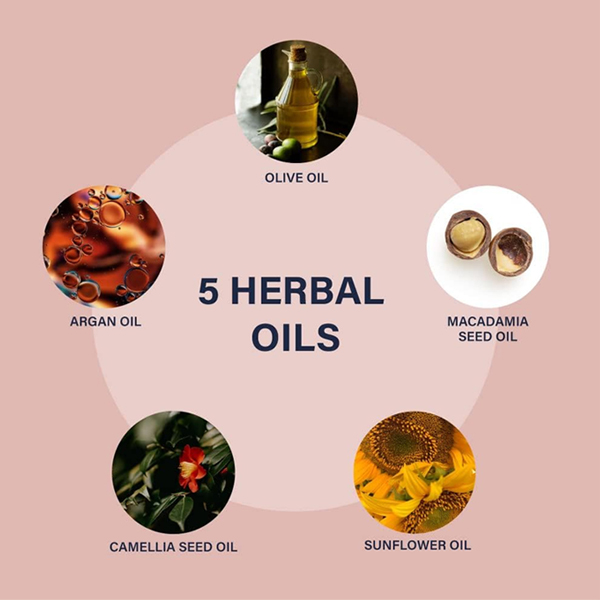 Plant-Derived Oils (Olive Oil, Macadamia Integrifolia Seed Oil, Argan Kernel Oil, Sunflower Seed Oil, Camellia Japonica Seed Oil): Penetrates hair shaft to strengthen and moisturize, leaving hair soft and nourished