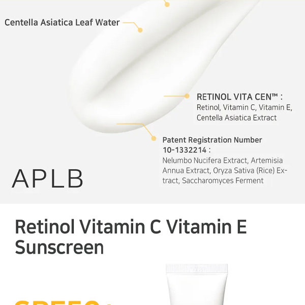 A sunscreen offers SPF50+ PA++++ sun protection and a natural look that does not clump even after reapplying and without a white cast.