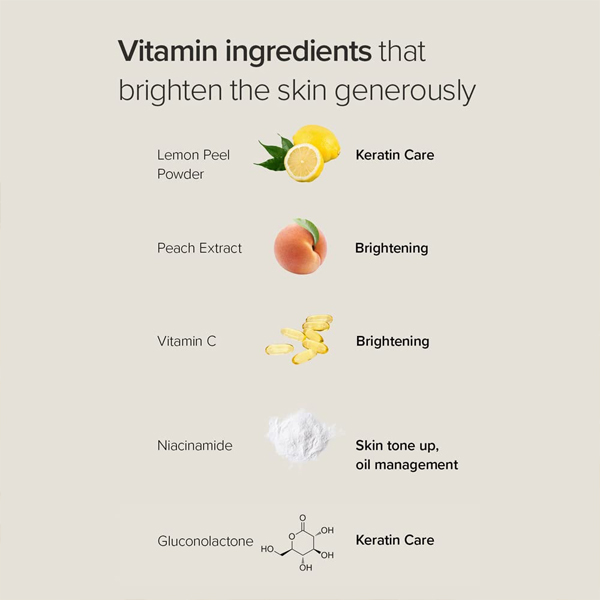 #Containing 4,000ppm Citrus lemon peel & Vitamin C 1,000ppm & Niacinamide 1% #Brightening & Tone-up