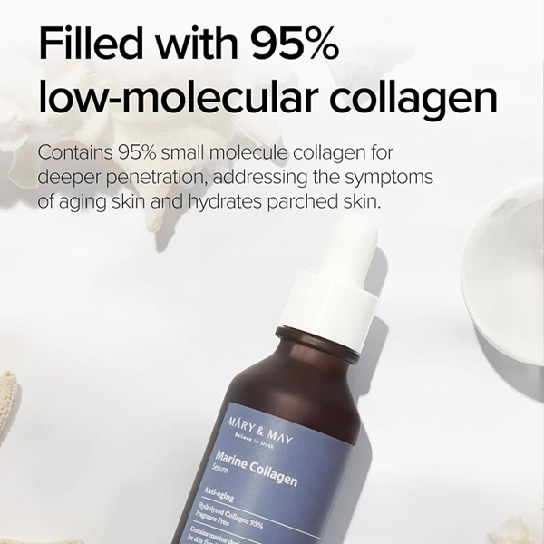 This serum from MARY & MAY is filled with 95% low-molecular marine collagen to reduce wrinkles without leaving a greasy feel.It adheres to the brand’s clean beauty concept by keeping ingredients to a minimum and refraining from animal testing.This quick absorbing serum contains 95% small molecule collagen for deeper penetration, addressing the symptoms of aging skin and hydrates parched skin.Delivers a boost of collagen to the skin to restore firm skin and refine visible wrinkles without feeling greasy.Formulated with EWG verified green grade ingredients.Free from animal testing and 7 harmful ingredients: paraben, artificial fragrance and colors, alcohol, mineral oil, surfactants and allergens.Dermatologically tested.