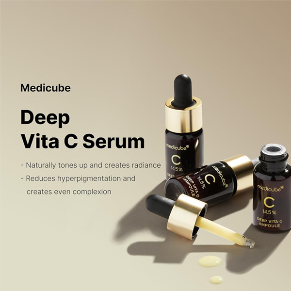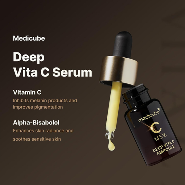 The Medicube Deep Vita C Ampoule 2.0 is a potent Vitamin C serum designed to reduce hyperpigmentation, even out skin tone and enhance skin radiance. Enriched with 14.5% Vitamin C and Alpha-bisabolol, this ampoule targets dark spots, uneven skin tone and signs of ageing, promoting a luminous complexion. Its lightweight formula penetrates deeply, delivering antioxidants that help protect against environmental stressors. With added hydrating ingredients, it nourishes the skin, leaving it feeling soft and radiant.